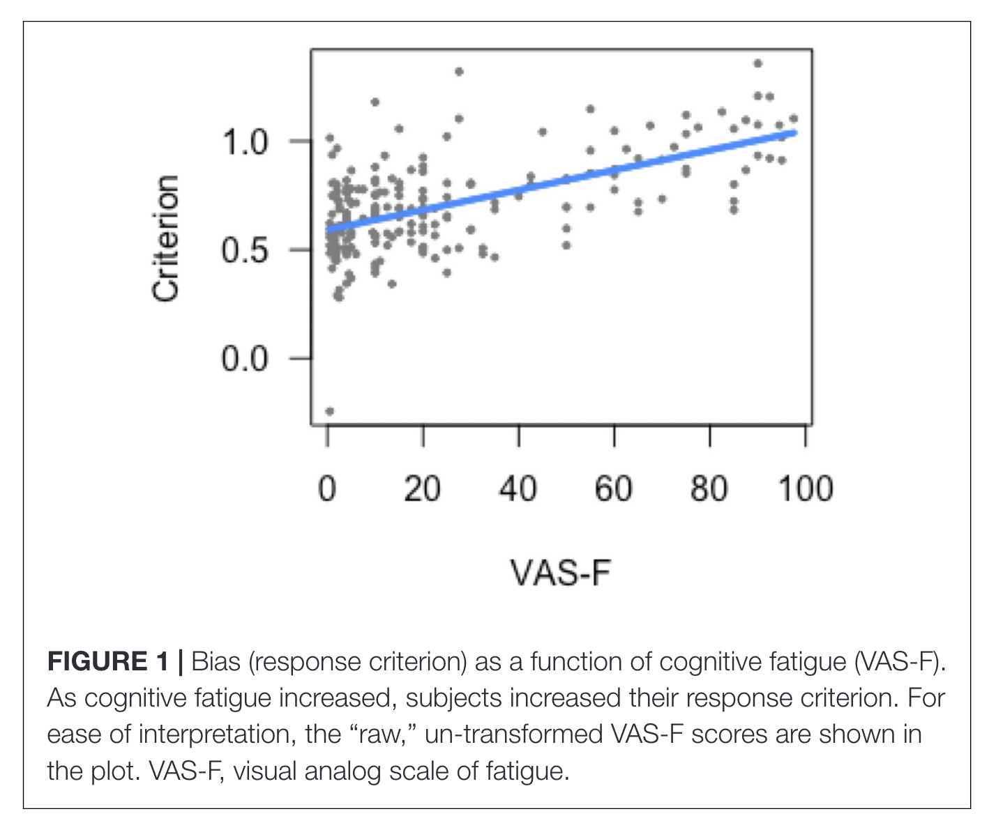 Wylie, G. R., Yao, B., Sandry, J., & DeLuca, J. (2020). Using Signal Detection Theory to Better Understand Cognitive Fatigue. Frontiers in Psychology, 11, 579188. https://doi.org/10.3389/fpsyg.2020.579188